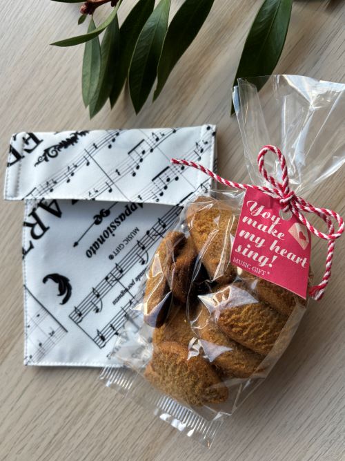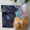– 100 gramas biscoitos artesanais, pasta de canela e aroma de limão (ingredientes: farinha de trigo, margarina vegetal, açúcar, ovo, canela, aroma de limão. Contém glúten.